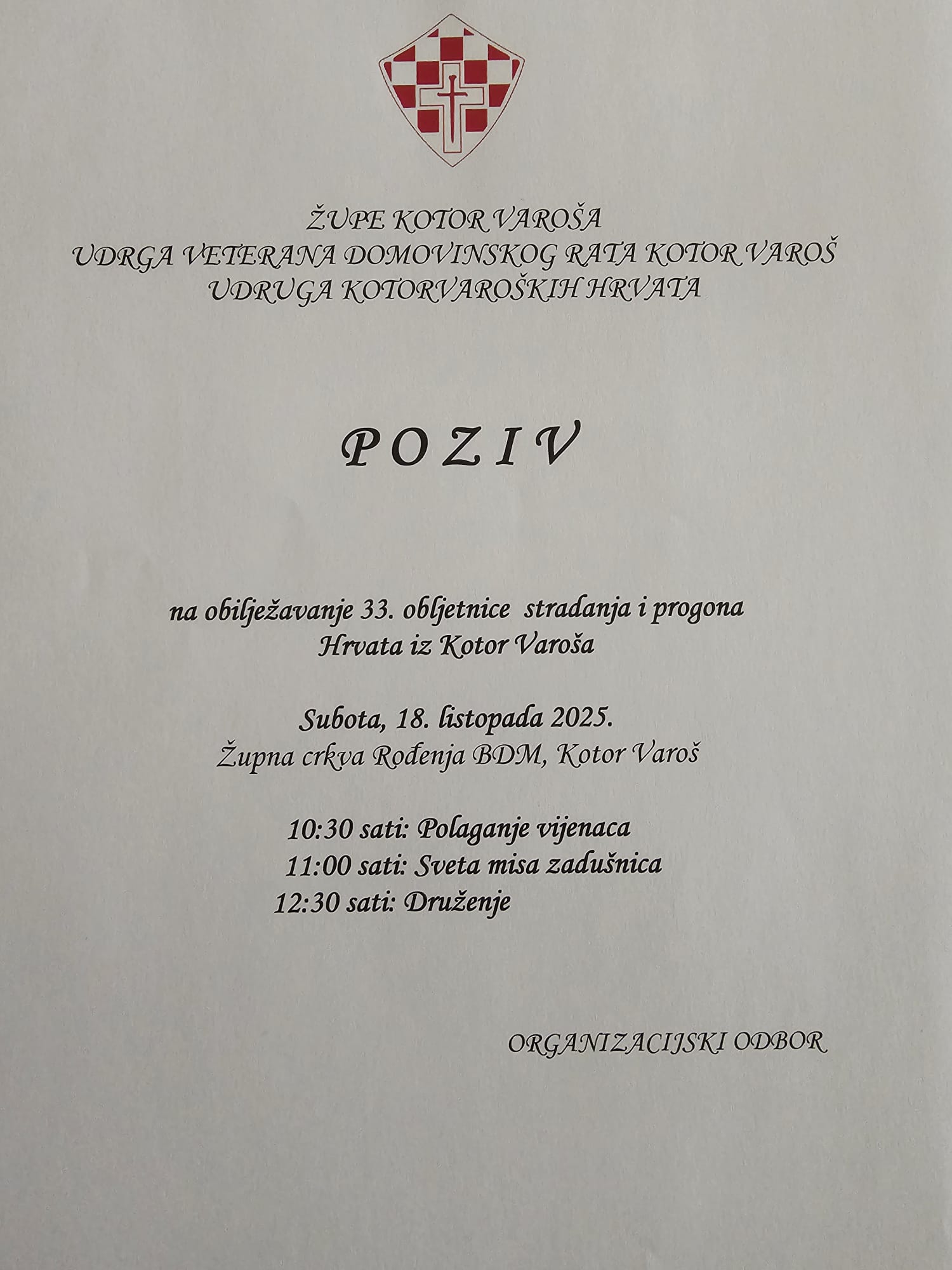 31 godina prošla je od 17. listopada 1992., dana kada je nekoliko tisuća preostalih kotorvaroških Hrvata, poslije višemjesečnih teških borbi i stotina ubijenih i ranjenih, bilo prisiljeno napustiti svoja stoljetna ognjišta i otići u nepoznato, na put pun neizvjesnosti. Njihova žrtva i kalvarija bit će trajna mrlja na savjesti onima koji su to napravili. U spomen na te tragične događaje u subotu, 14. listopada 2023. u Kotor Varošu je obilježena 31. obljetnica borbe, stradanja i progona Hrvata iz Kotor Varoša. Svečano i s pijetetom prema žrtvama brojni su Hrvati iz kotorvaroške doline, hrvatski branitelji i njihovi prijatelji položili vijence i upalili svijeće u spomen i sjećanje na one koji su dali svoje živote u borbi za svoju samobitnost i svoj dom. Vijenac su položili generalni konzul RH u Banjoj Luci Zoran Piličić i izaslanik SDU za Hrvate izvan Hrvatske Ivan Zeba, izaslanik dopredsjednika RS iz reda hrvatskog naroda, predstavnici Udruge veterana Domovinskog rata Kotor Var...